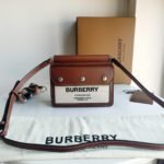 The Burberry small diagonal backpack “title Telte handbag” is made of leather and canvas decorated with Li embroidery thread. It features a fashion show style horseferry print, exquisite top metal rod design, and three rivets for opening and closing.