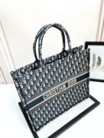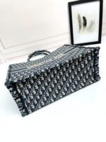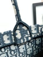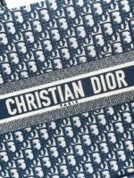 Maria Grazia Chiuri’s hallmark Dior Book Tote is offered in an elegant variation. The refined style showcases an iconic blue Dior Oblique embroidery and calfskin. Designed to keep all the daily essentials organized, the interior is equipped with a zip pocket and slip pockets. Featuring an embroidered adjustable, removable strap, the practical medium tote exemplifies Dior’s savoir-faire and can be carried by hand or worn over the shoulder.