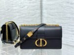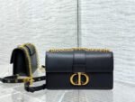 The 30 Montaigne line is inspired by the emblematic address and offers essential pieces that embody the House’s iconic codes. The bag is crafted in black box calfskin for an elegant and modern look. The flap is embellished with a gold-finish metal CD clasp, inspired by the seal of a Christian Dior perfume bottle. Refined details such as an embossed 30 Montaigne signature on the back, define this unique design. Featuring an adjustable leather strap, the 30 Montaigne bag can be carried by hand, worn over the shoulder or crossbody.