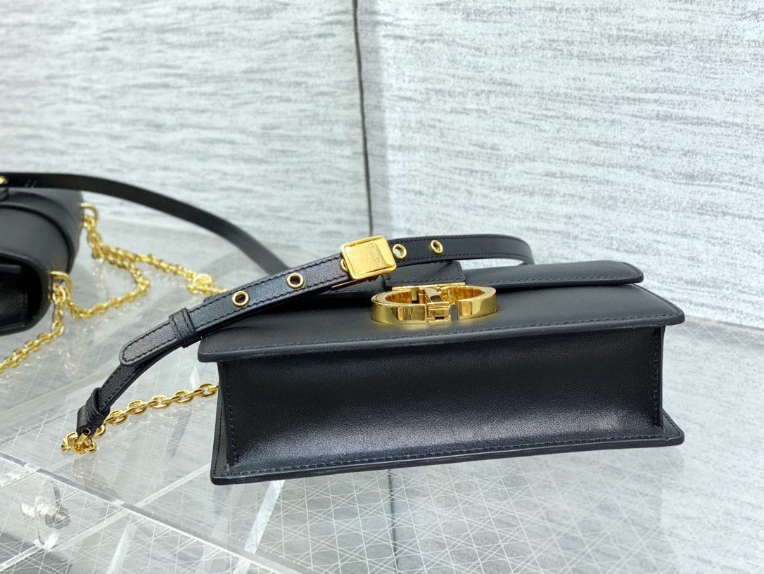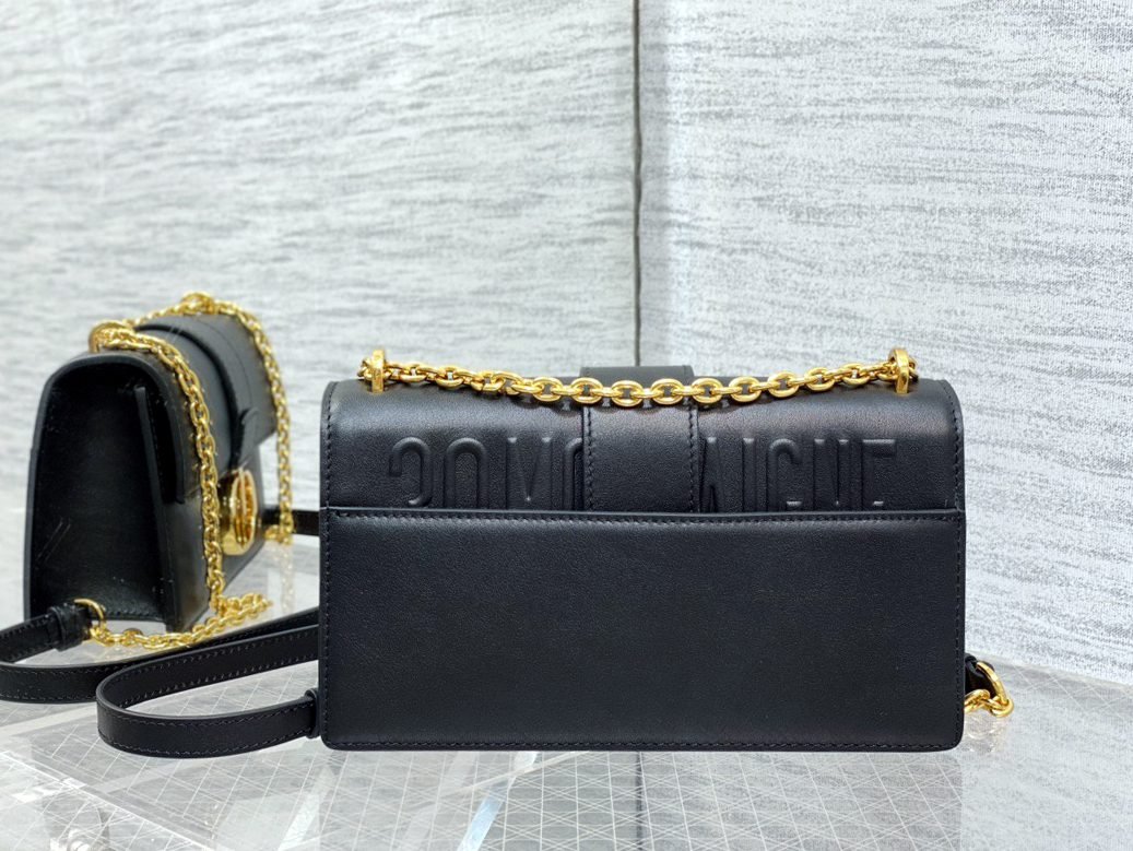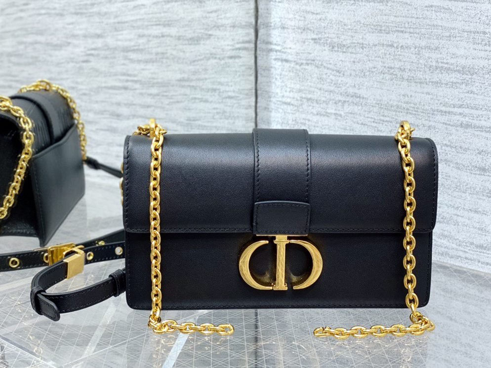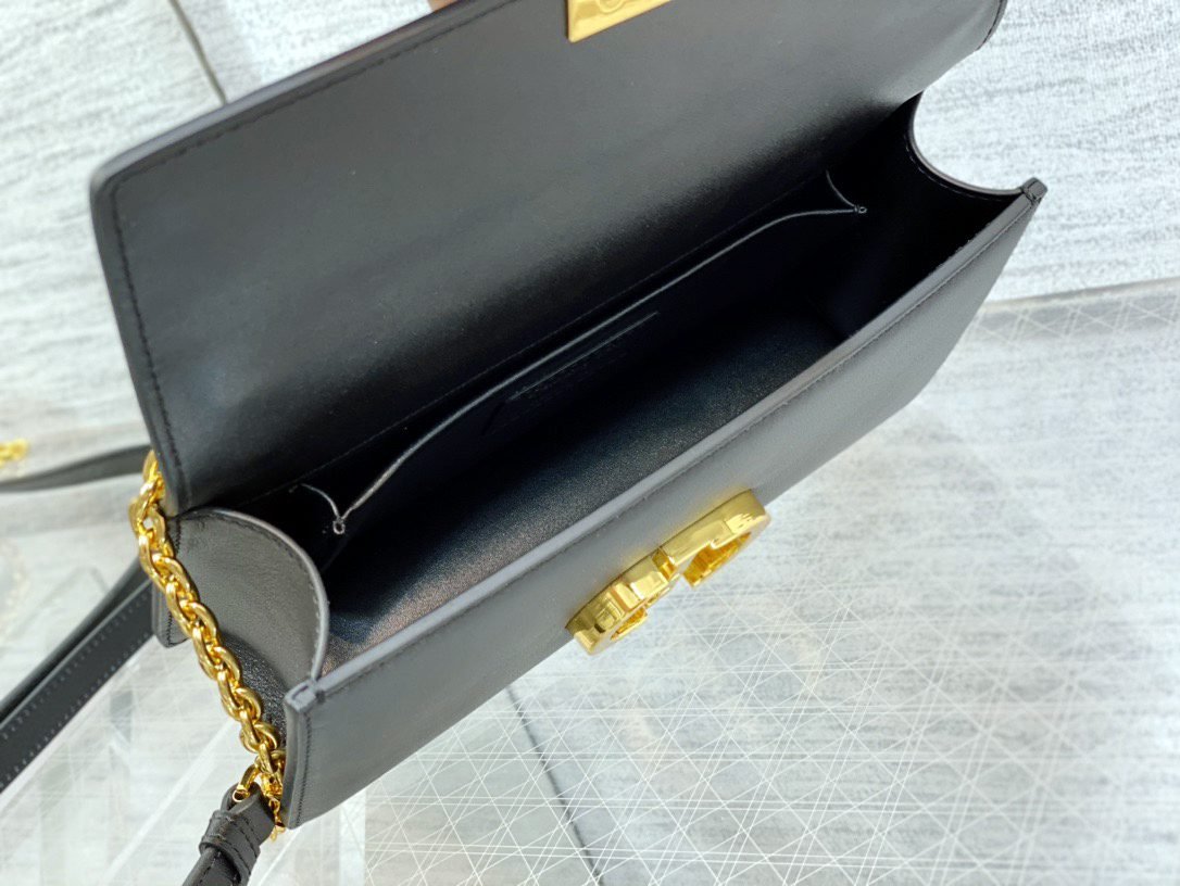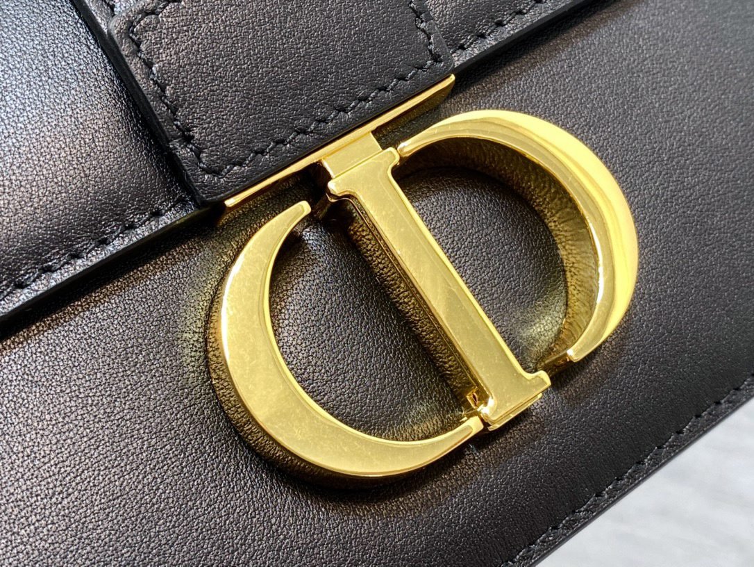 The 30 Montaigne line is inspired by the emblematic address and offers essential pieces that embody the House’s iconic codes. The bag is crafted in black box calfskin for an elegant and modern look. The flap is embellished with a gold-finish metal CD clasp, inspired by the seal of a Christian Dior perfume bottle. Refined details such as an embossed 30 Montaigne signature on the back, define this unique design. Featuring an adjustable leather strap, the 30 Montaigne bag can be carried by hand, worn over the shoulder or crossbody.