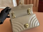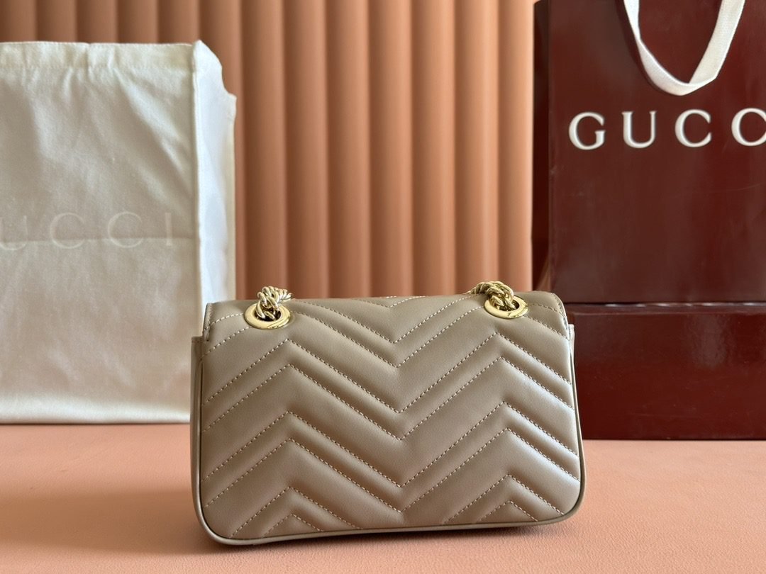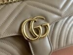 Made in matelassé chevron leather in a neutral shade of light grey, the GG Marmont small shoulder bag has a softly structured shape and a flap closure with Double G hardware. Designed to be worn multiple ways, the chain strap slides to change between a shoulder and a top handle bag.