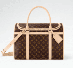Louis Vuitton’s classic Dog Carrier has been updated with a sleek design and handy new functions. Styled in Monogram canvas with natural cowhide trim like the historic version, it’s designed for comfort with plush carpet and a soft ventilation net. Easy to carry with its adjustable shoulder strap, it’s the stylish, practical way to travel with a pet.