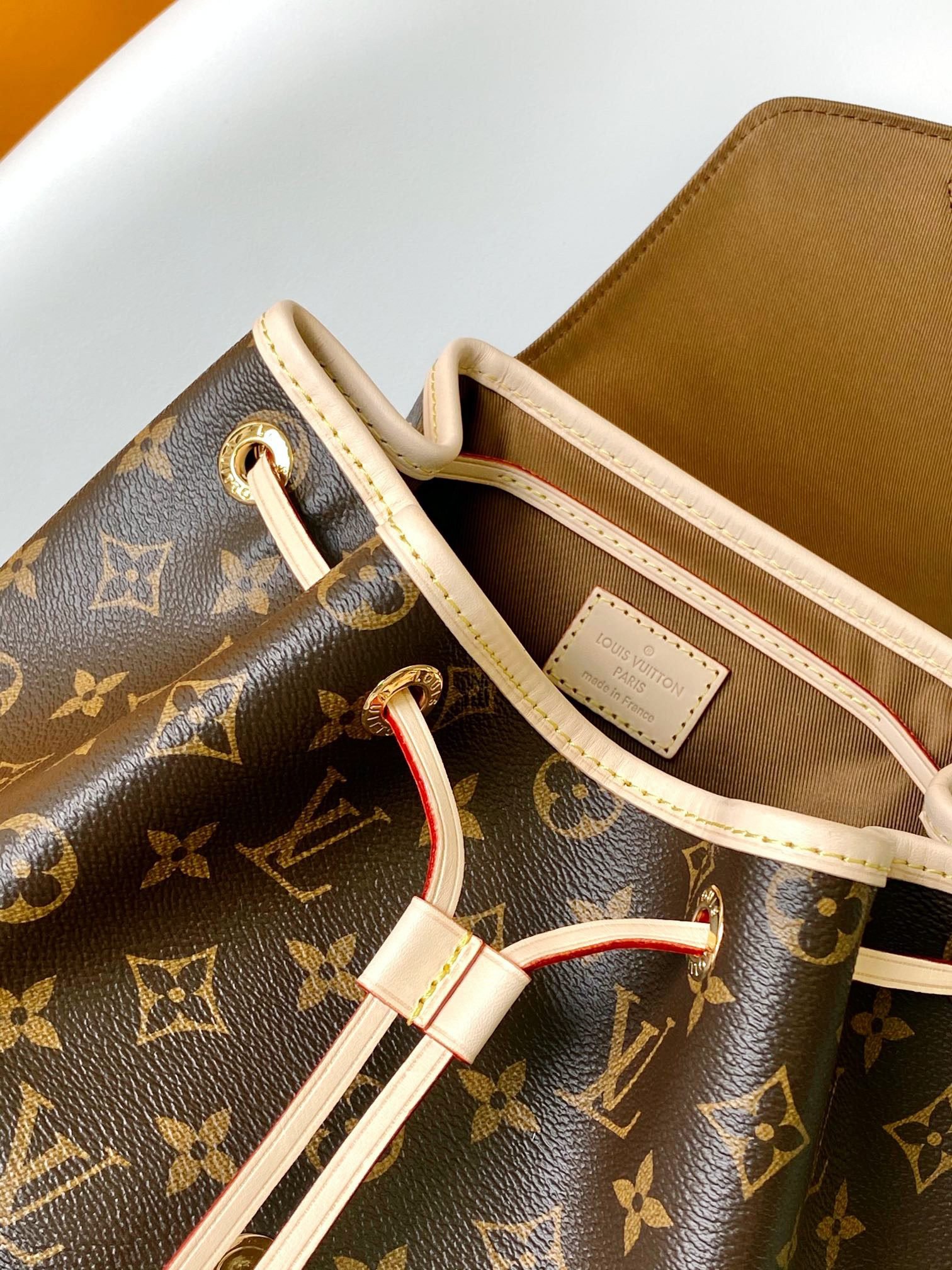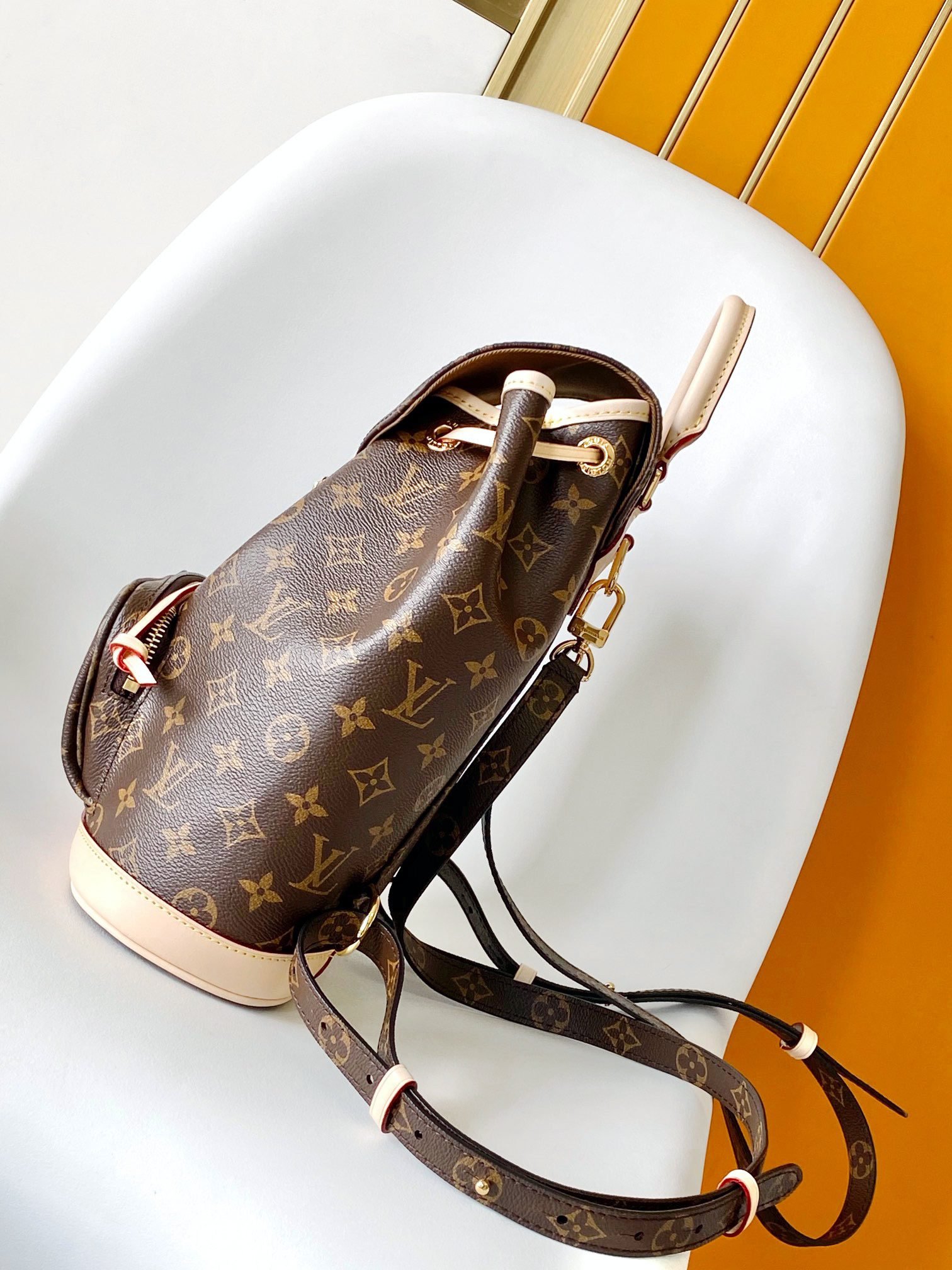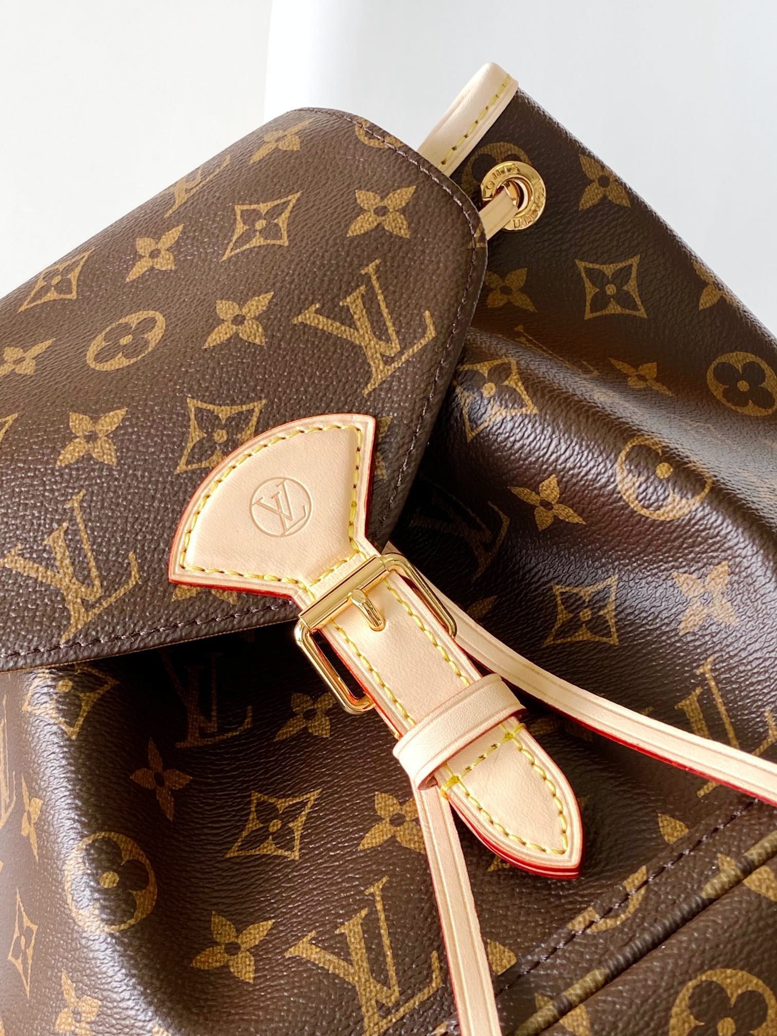 Inspired by the House’s Montsouris bag from 1994, the practical and stylish Montsouris PM backpack by Nicolas Ghesquière is made from Monogram coated canvas, with cowhide-leather trim. The leather top handle and two adjustable monogram canvas straps give carry options while the tasteful drawstring and magnetic closure bring security.