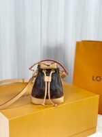The Nano Noé is a miniature version of the iconic Noé bag, created in 1932. Crafted from Monogram canvas with trim in natural cowhide leather, this tiny Nano Noé combines heritage with modern functionality. Its removable handle and removable, adjustable strap offer multiple carry options, while it is spacious enough to hold essentials including keys, a card holder and a smartphone.