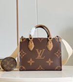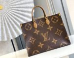The name says it all: OnTheGo MM takes care of business or shopping, with plenty of room for a busy woman’s essentials. With Giant Monogram canvas on one side and Monogram Reverse on the other, it is virtually two bags in one. Twin Toron top handles and two shoulder straps offer several different carry styles, for extra versatility.