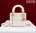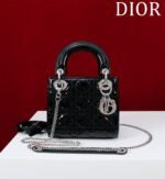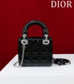 The Lady Dior bag epitomizes the House’s vision of elegance and beauty. Sleek and refined, the timeless creation is crafted in black lambskin and covered with Cannage stitching, creating an instantly recognizable quilted texture. Pale gold-finish metal D.I.O.R. charms embellish and illuminate its silhouette. Featuring a removable chain shoulder strap, the miniature Lady Dior bag can be carried by hand or worn crossbody as an ideal evening wear companion.