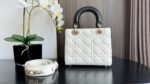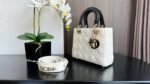 The Lady Dior bag embodies Dior’s vision of elegance and beauty. Sleek and refined, the timeless yet modern style is crafted in trench beige and latte lambskin with Cannage stitching, creating the unmistakable quilted texture. D.I.O.R. charms illuminate its silhouette and are embellished with enamel in a shade that matches the top handles. Featuring a thin, removable leather shoulder strap, the small Lady Dior bag can be carried by hand or worn crossbody.