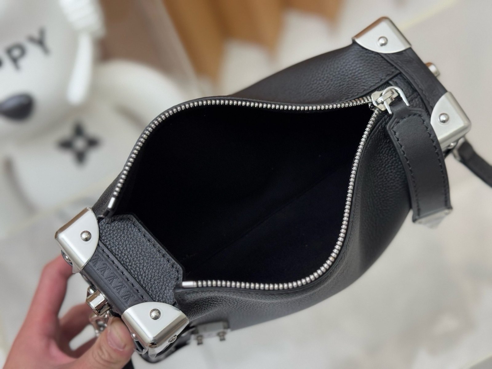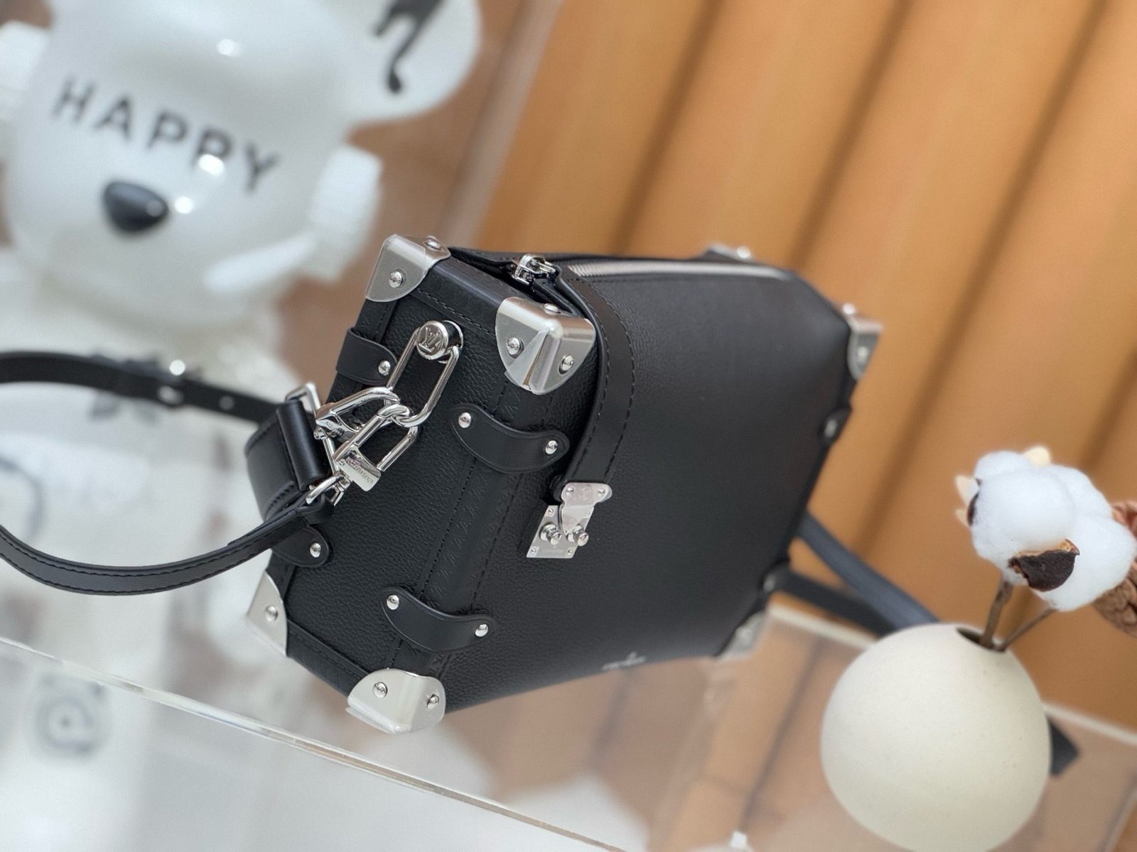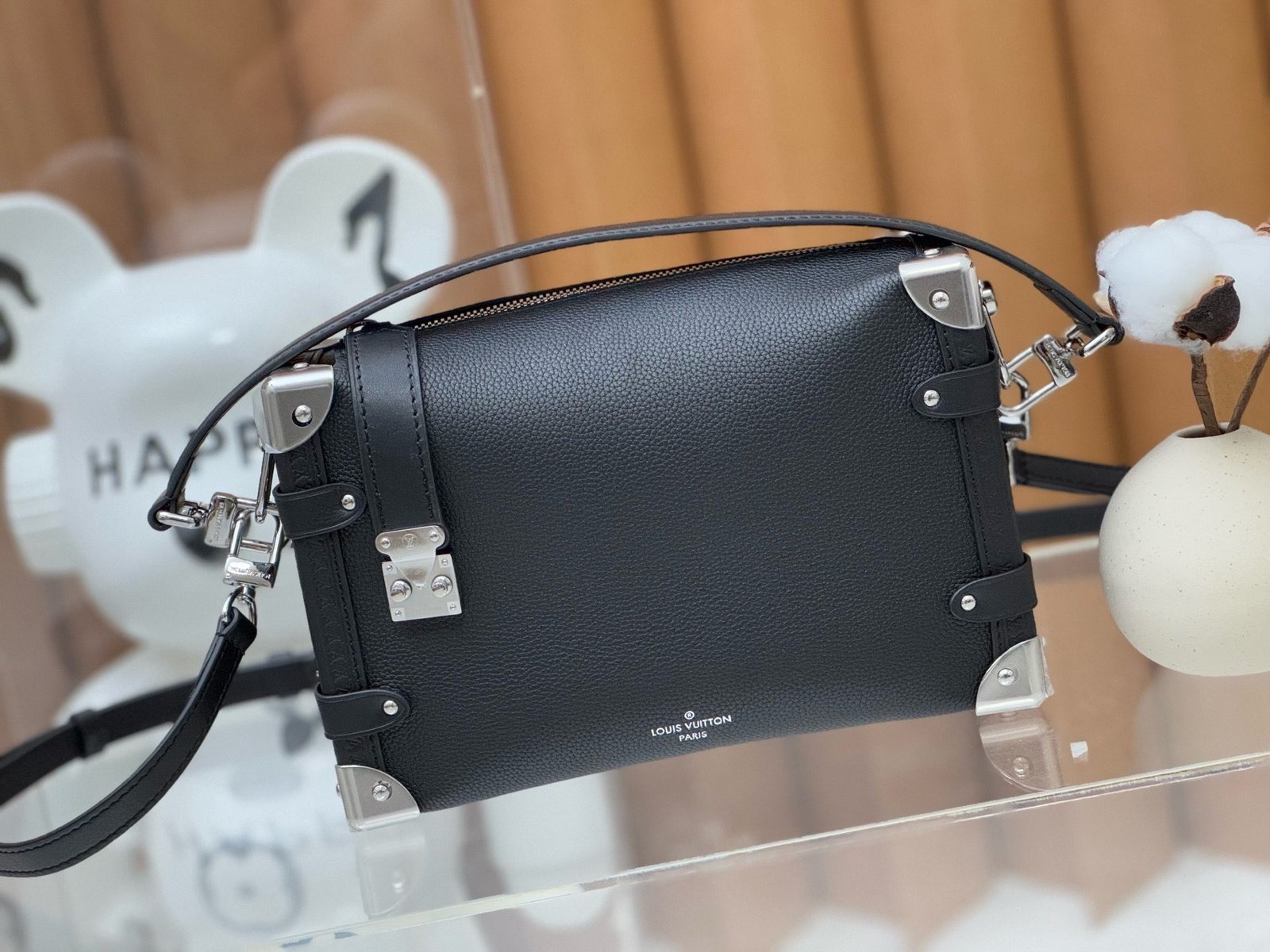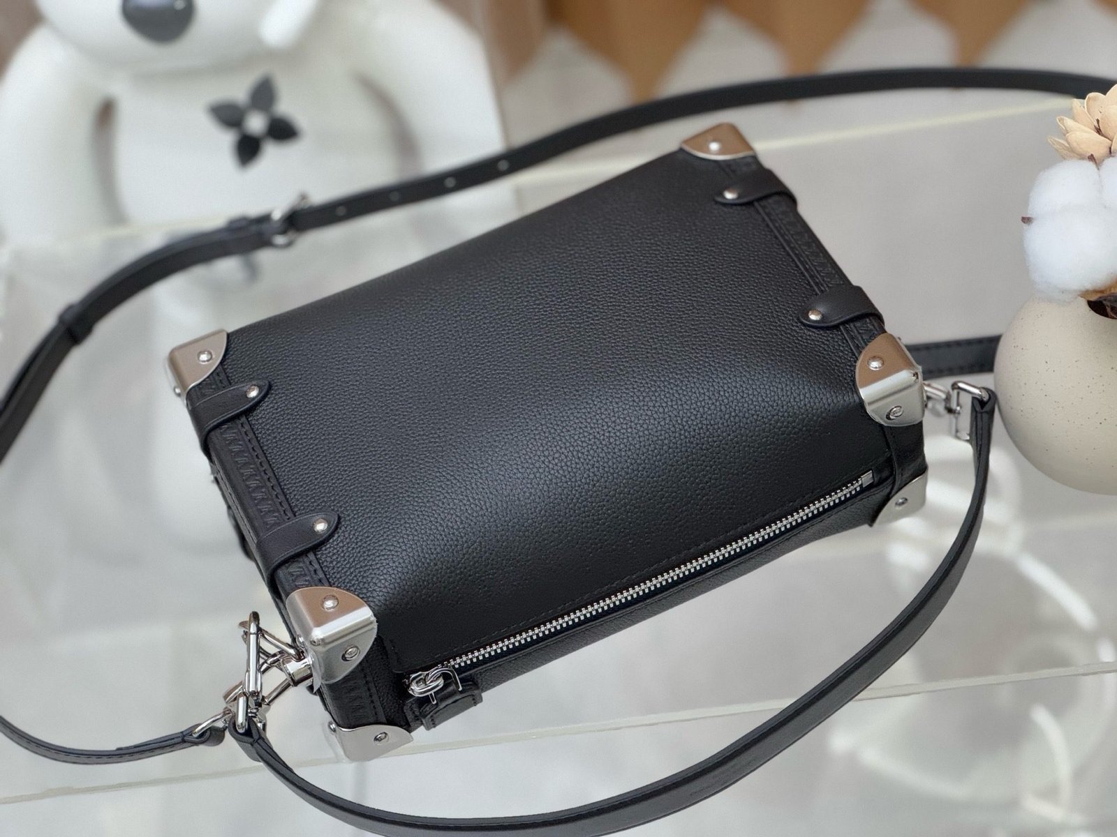 The elegant Side Trunk MM handbag is Creative Director Nicolas Ghesquière’s ode to the House’s historic trunks. Made from grained calf leather with smooth cowhide-leather trim, it features an S-lock and reinforced metallic corners. The removable handle enables hand carry while the detachable and adjustable leather strap adjusts for shoulder and cross-body